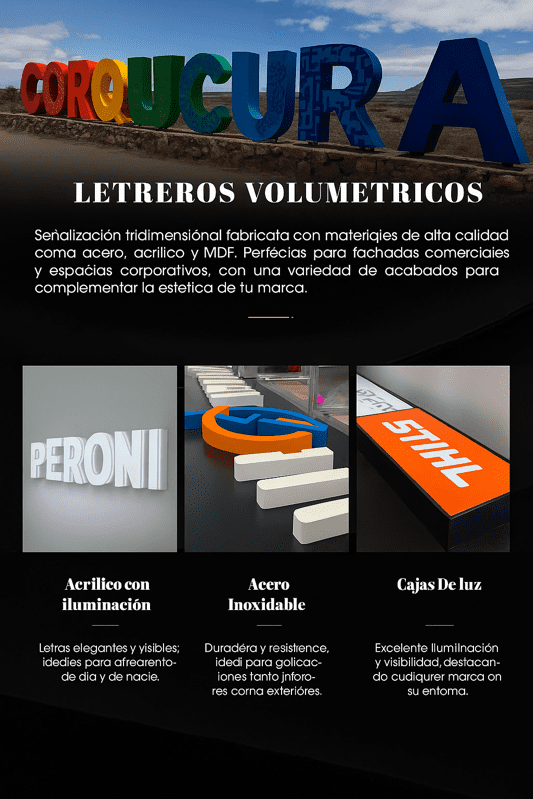- Dimensión y Presencia Inconfundible: A diferencia de la señalética plana, las letras volumétricas proyectan una profundidad y un relieve que capturan la mirada. Dan a su marca una presencia escultural en fachadas, lobbies o espacios exteriores, elevando su percepción a un nuevo nivel.